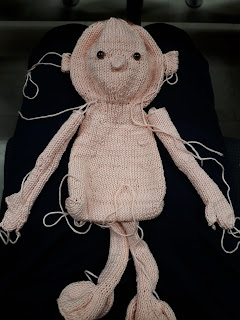 I'm trying to get the basic body pattern to the point where I can publish it, but it still needs some fixes to it. The doll is done both knitting in flat and using DPNs. I like when I can use both techniques, it gives a fun feeling to knitting.